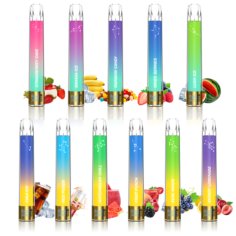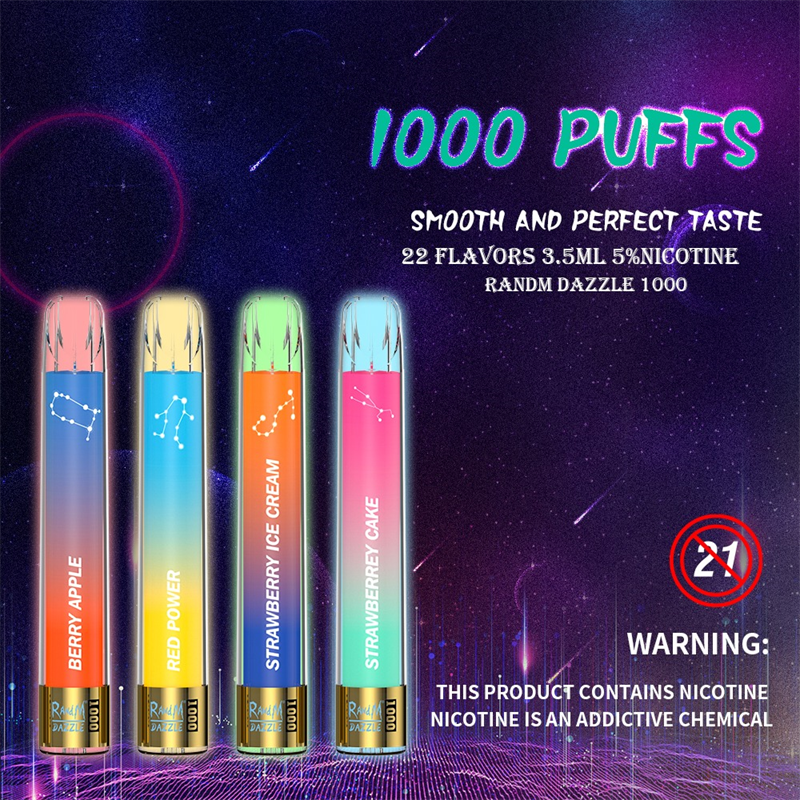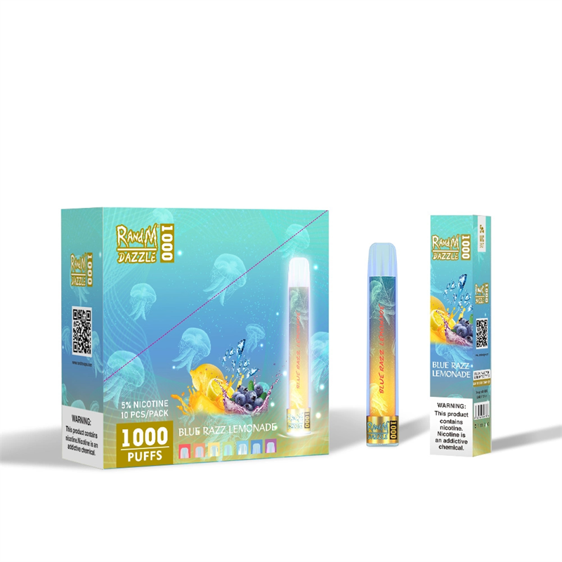 RandM Dazzle 1000 is a disposable vape device with colorful led light design. It contains 1.99ml 2% nicotine salt e-juice and vape at least 560 puffs. There are 10 flavors for you to choose. The RGB light makes it the coolest disposable device.