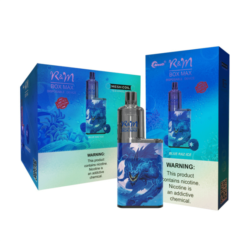 The R&M BOX MAX disposable device provides smokers with approximately 8000 puffs and features a mesh coil design for a more flavorful smoking experience. This disposable vaping device features 2%/5% nicotine salt e-juice, a built-in 650ml high-capacity battery and 12.5ml e-liquid oil capacity,with a wide range of flavors to choose from.